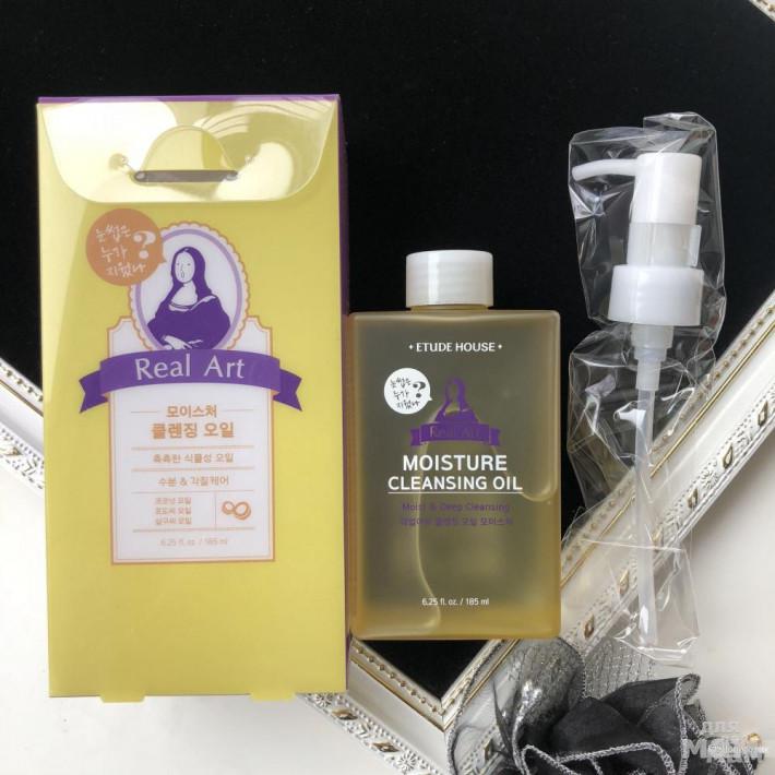 Etude House - Real Art Cleansing Oil Moisture - очищающее косметическое средство, содержащее комбинацию нескольких масел - кокосовое, виноградное, абрикосовое, кунжутное. Масло очень легкое, при нанесении на лицо макияж тает и почти стекает с лица, делая кожу чрезвычайно увлажненной и чистой. Масло предназначено для всех типов кожи.