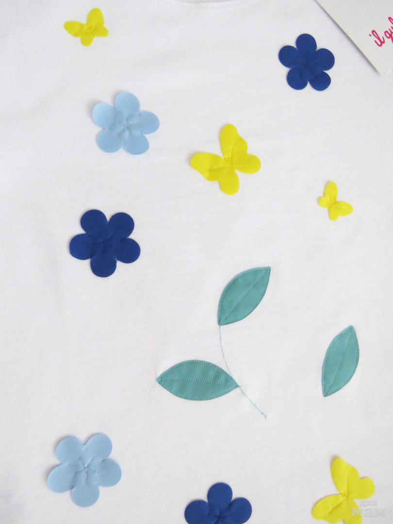 Плечи - 33,5 см, подмышки - 40 см, по низу - 47 см. Рукав - 14,5 см от плеча. Длина по середине спинки - 49 см