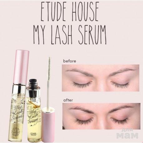 Cыворотка для быстрого роста ресниц Etude House My Lash Serum удобной щеточкой для нанесения.