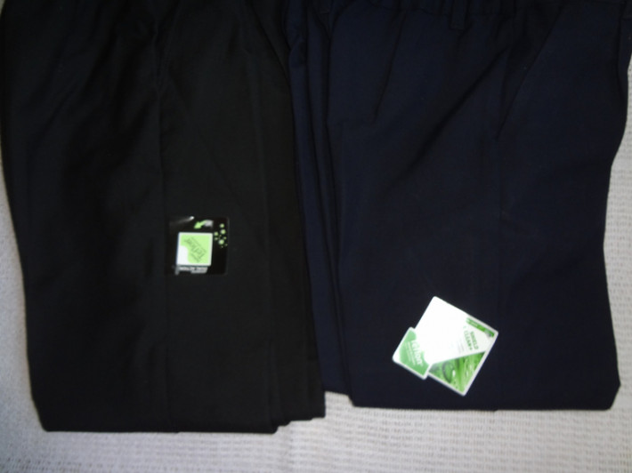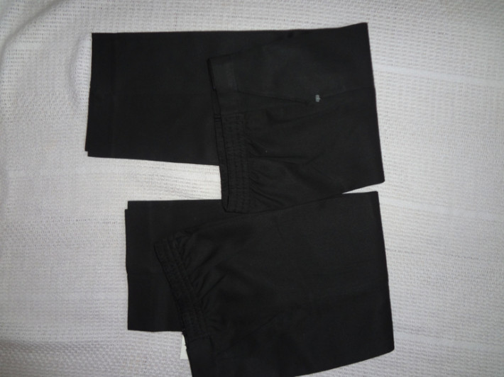 БРЮКИ ЧЕРНЫЕ REGULAR FIT С УСИЛЕНИЕМ НА КОЛЕНЯХ ОТ ПРОТИРАНИЯ ЗАУЖЕНЫ ШТАНИНЫ С тефлоновой защитой от пятен. Не мнутся. Стираются в машинке. Не надо гладить. С утяжкой с 2 сторон. С молнией и крючком спереди и резинка сзади. продавались в комплекте по 2 брюк. вы можете купить по 1.