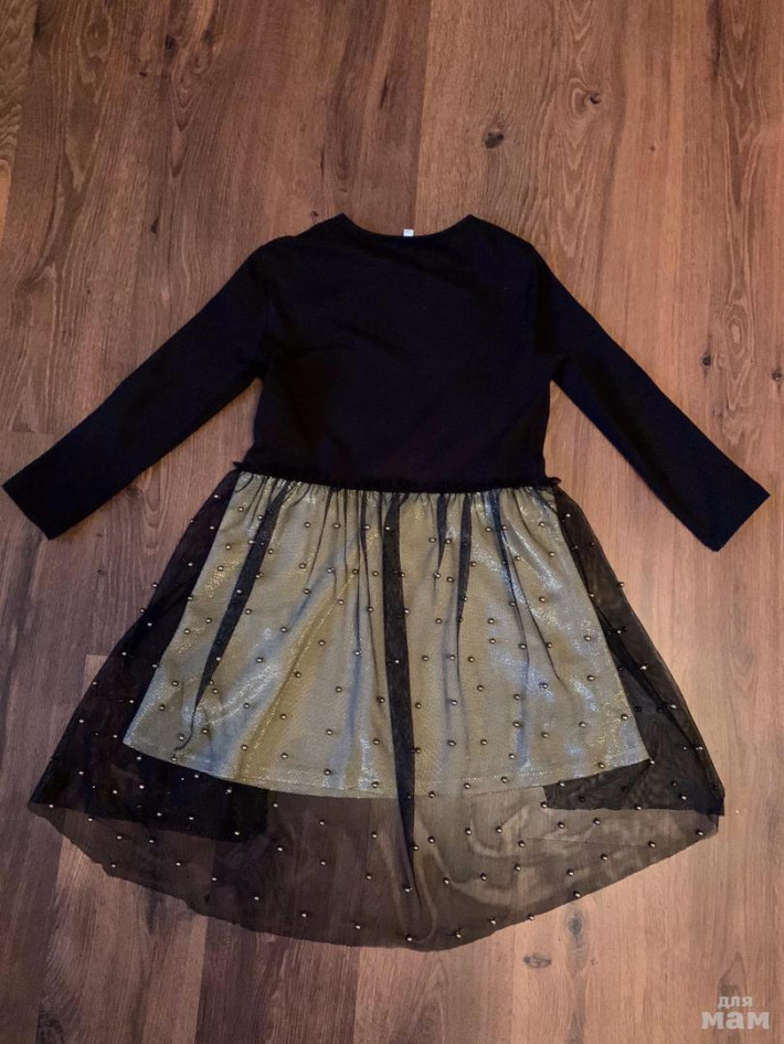 Платье б/у одето один раз -в идеальном состоянии. Россия . Размер 134. Рукав неполная длина . Длина 65 см ,п/ о груди 36,5 см , рукав от плеча 39.5 см .