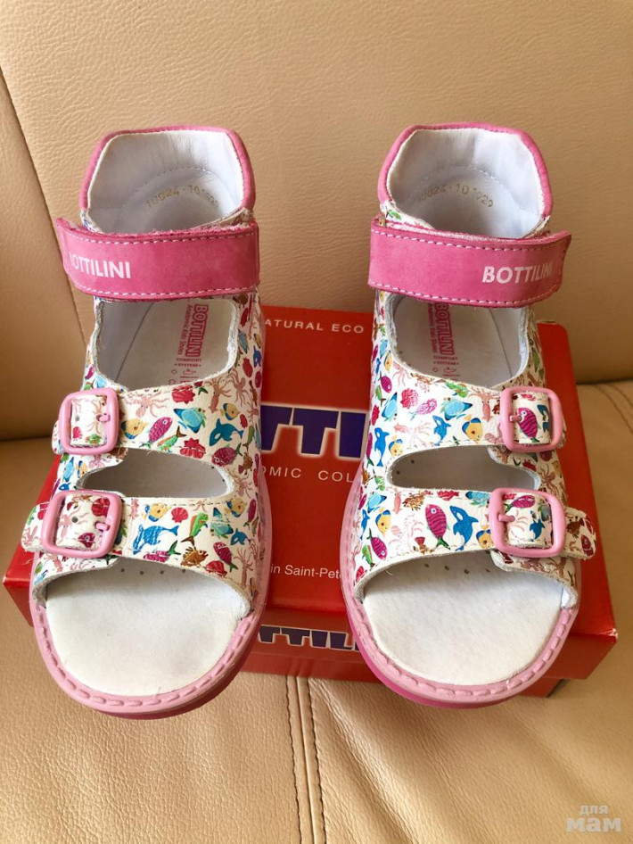 Замечательные ортопедические сандалии фирмы Bottilini. Состояние отличное, купила незадолго до карантина, успели обуть на занятия пару раз, а сейчас уже стали малы.