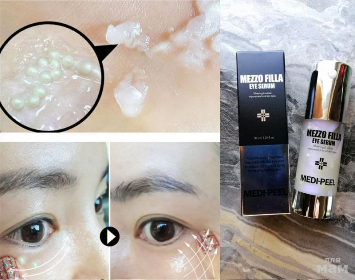 Омолаживающая пептидная сыворотка для век MEDI-PEEL Mezzo Filla Eye Serum обладает ярко выраженным подтягивающим действием, разглаживает мимические морщинки в области вокруг глаз и носогубных складок, обладает ревитализирующим действием и тонизирует, даёт глубокое увлажнение и мягко осветляет тёмные круги.