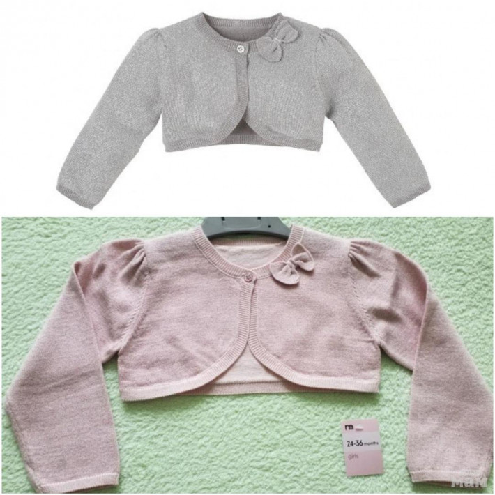 Новый кардиган болеро Mothercare размер 18-24, с этикеткой. С люрексом, цвет серый, украшен бантиком. Идеально сочетается практически со всеми цветами одежды.