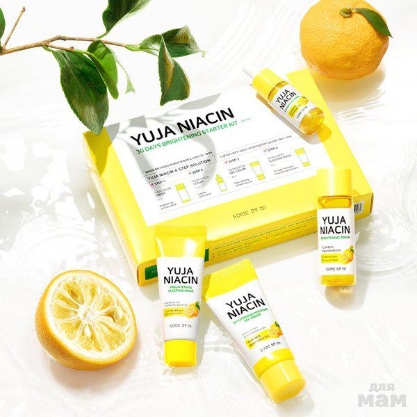 Набор миниатюр с юдзу для выравнивания тона Some By Mi Yuja Niacin 30 Days Brightening Starter Kit состоит из 4-х мини-версий продуктов с экстрактом юдзу. Подходит для всех типов кожи, действие направлено на выравнивание тона кожи и осветление нежелательной пигментации и пост-акне. Средства насыщают кожу витаминами и наполняют здоровым сиянием.