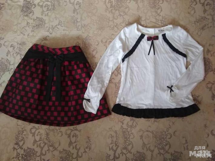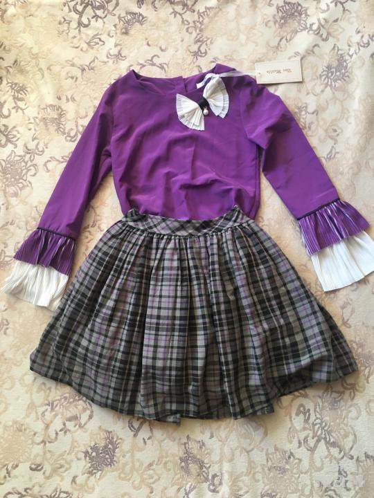 33.Комплект новый Турция р. 10 лет на р. 140. Кофточка из вискозы, пуговицы сзади, юбка - пояс на резинке, плотная ткань, хлопковая подкладка. Цена 1500 руб.
