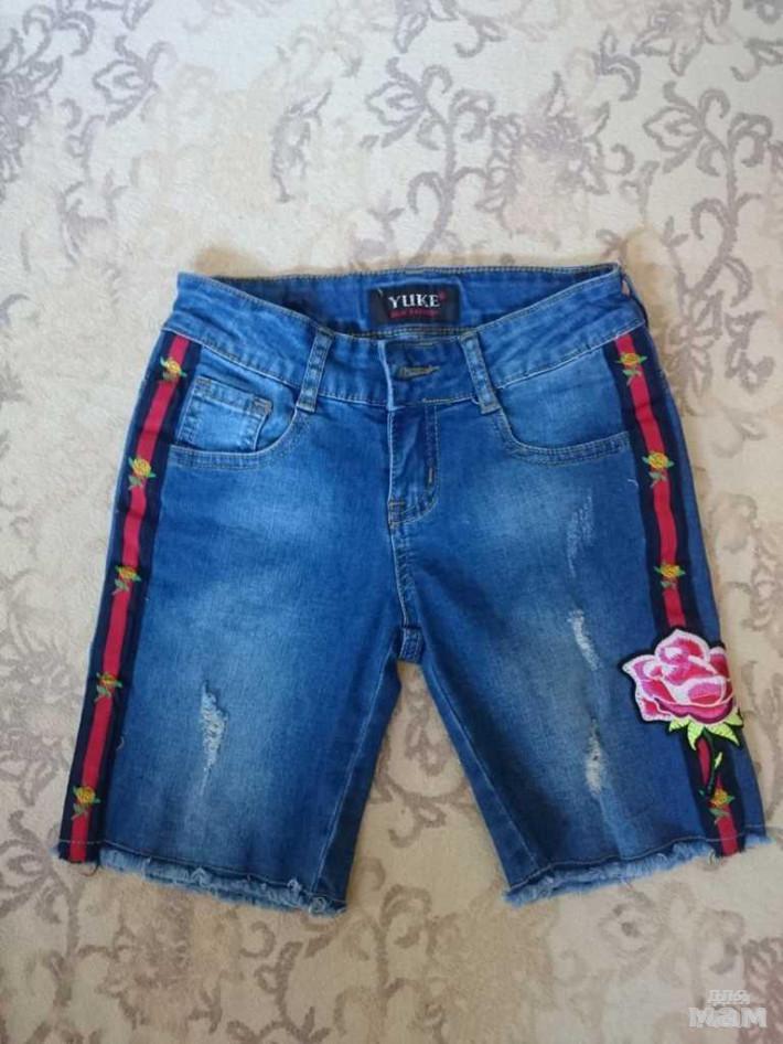 56.Джинсовые шорты Yuke р.140, стрейч,утяжка в поясе, цена 350 руб