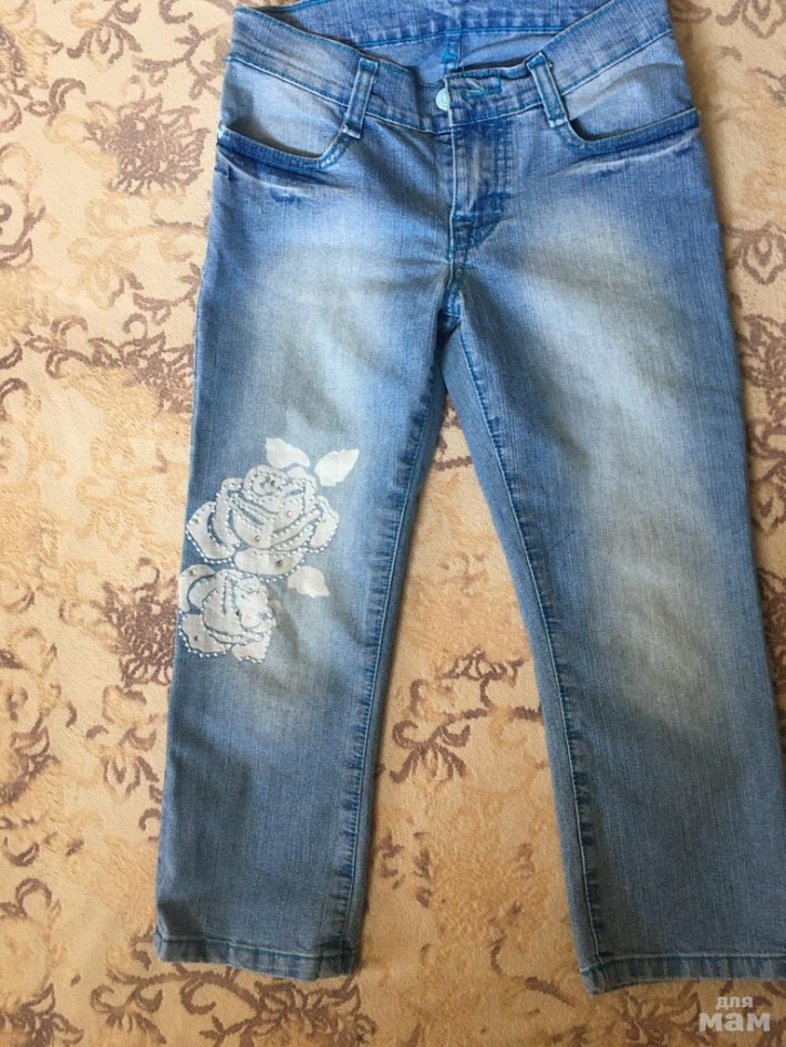 52.Бриджи BOBOLI Испания. стрейч, утяжка в поясе, вышивка на брючине. р. 10, но носили на р. 146,нюансов е нашла. цена 650 руб.