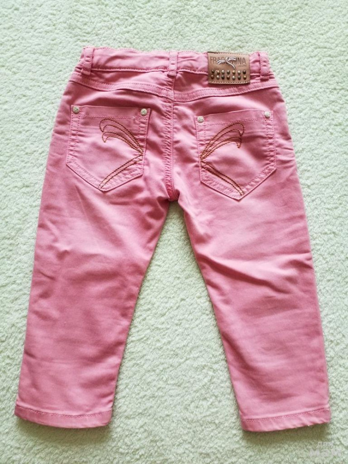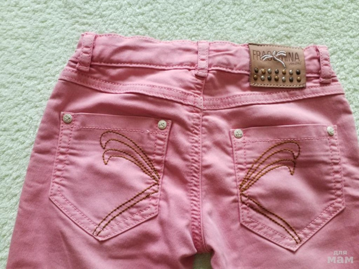 Носили мало. Шаговый шов 29 см. 5 карманов, застегивается на пуговку, по талии утяжка. Цвет очень красивый розовый нежный, слегка выбеленный вдоль штанины. Покупала в Винни.