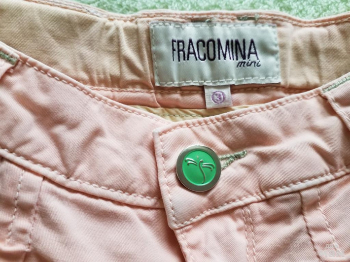 Шикарные шорты Fracomina р. 3 Италия плотный хлопок, тонкая джинса. 2 кармана, сзади обманка карманы, по поясу утяжка, но штанине сбоку разрезы на пуговках. Цвет светло- оранжевый. Состояние отличное. Покупала в Винни. Отправляю в регионы.