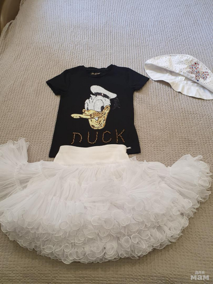Роскошный комплект на 8-9лет, одет 1 раз на ДР!Безумно красивый! Юбочка Маленькая леди + футболка Де салитто!Стоил как и смотрится ДОРОГО!