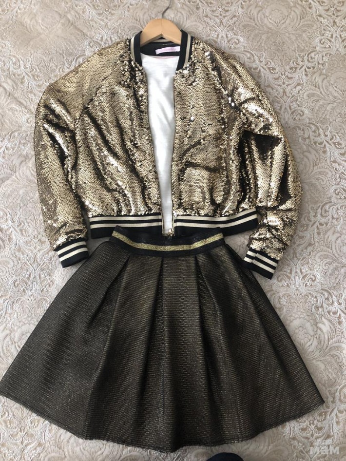 Модныйкомплект для девочки фирмы Стильняшка. Бомбер,юбка,футболка.