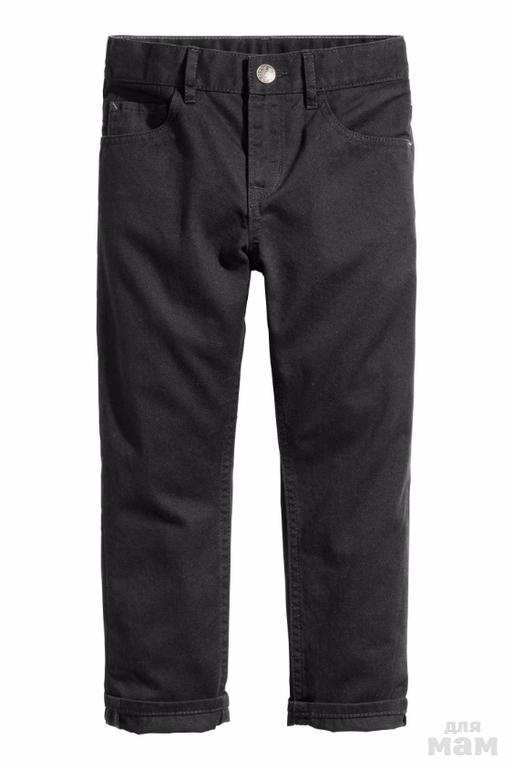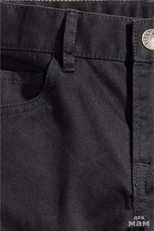 Джинсы черные фирмы Н&М. 3 кармана впереди, 2 сзади, застежка кнопка+молния, регулируются в поясе резинкой-утяжкой. Состав 100% хлопок.