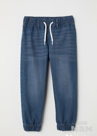 Джинсы джогеры фирмы H&M. Cиние, в поясе резинка + шнурок утяжка по кругу для регулировки ширины, низ штанины на резинке, сзади карман. Состав 92% хлопок, 8% полиэстер. Джинса ближе к тонкой, не плотная.