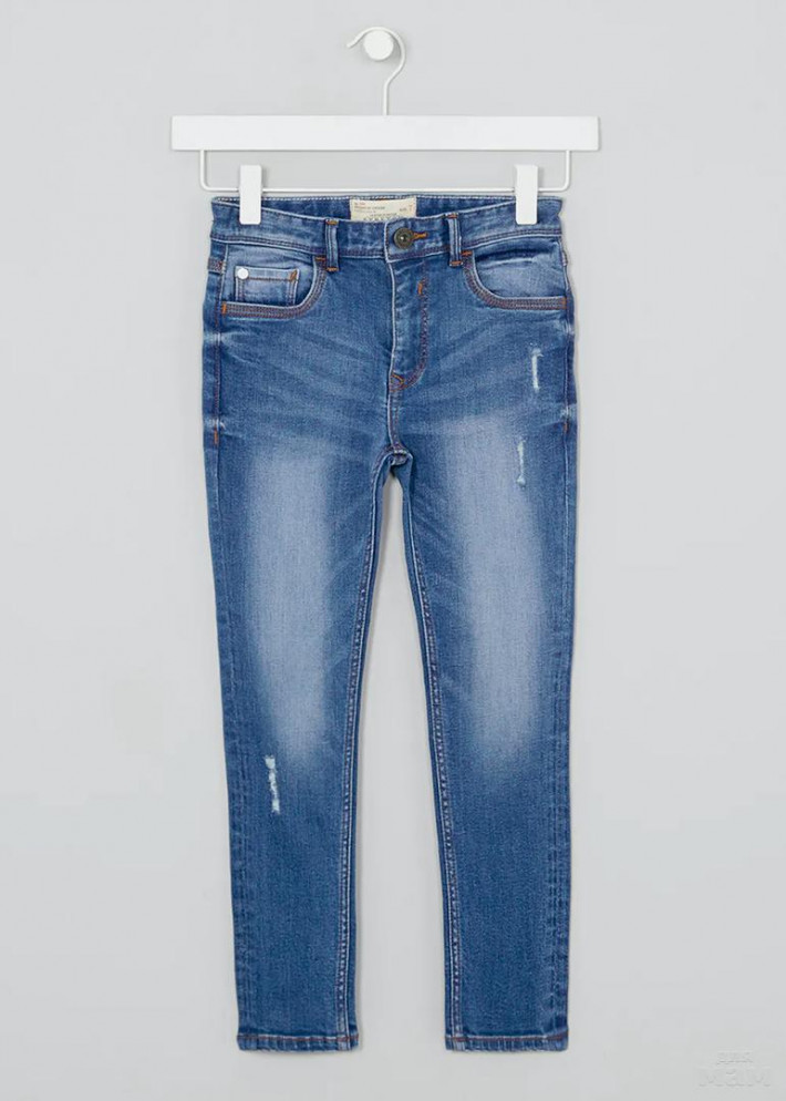 Джинсы зауженные скинни голубые с потертостями фирмы Matalan. 3 кармана впереди, 2 сзади, застежка пуговица+молния, регулируются в поясе резинкой-утяжкой. Состав 99% хлопок, 1% эластан.