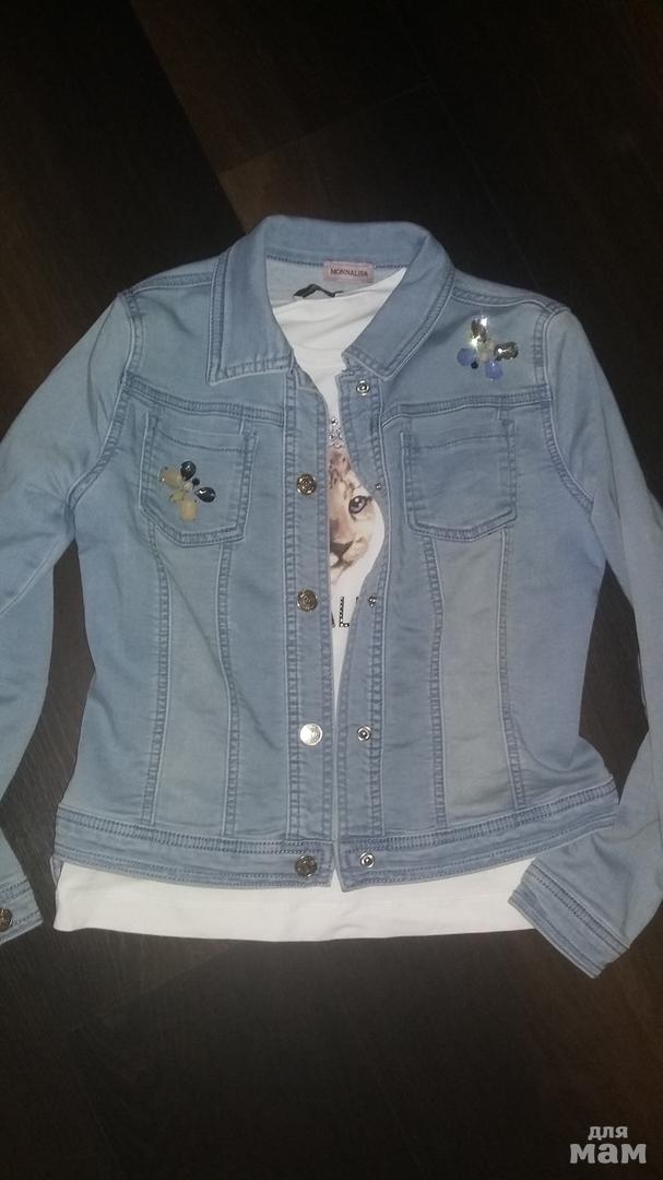 Джинсовая курточка и футболки. Размер 11-12 лет. Джинсовка б/у мало и аккуратно, футболки новые (без бирки).