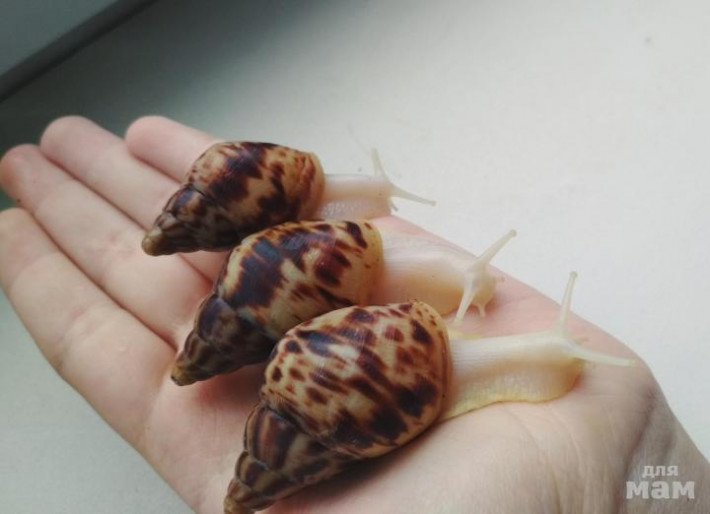 1) Ахатина (коричневая ножка) 2 улиточки, им по 2 года, 10-12 см. за 400 руб.