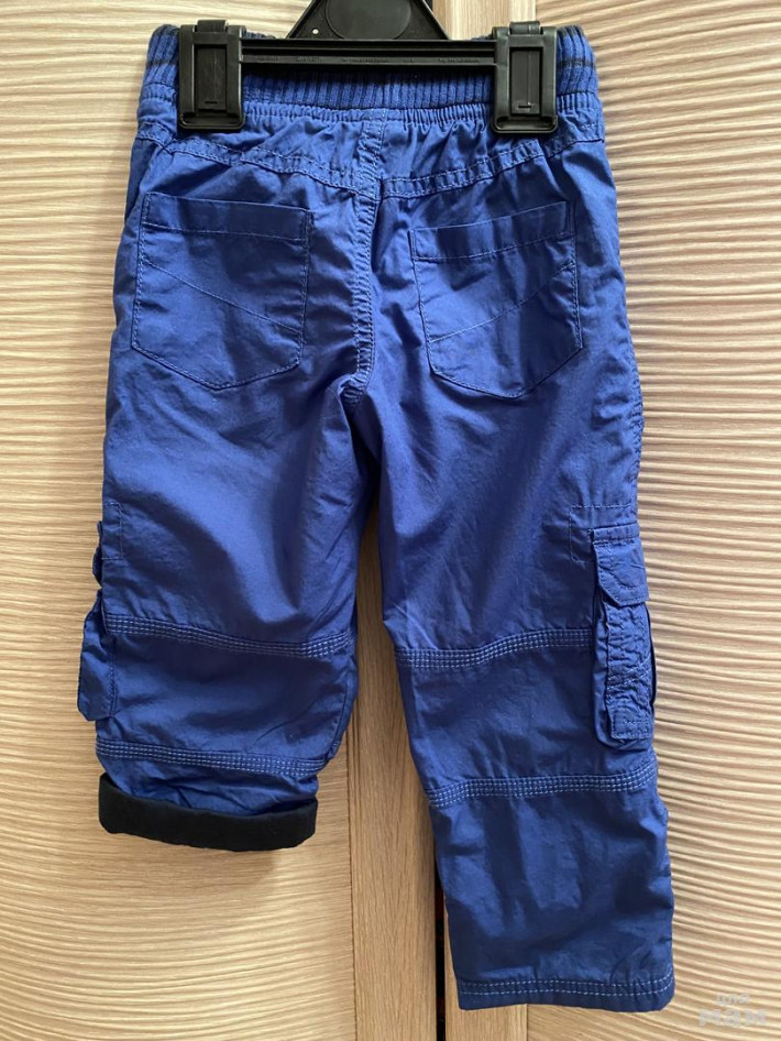 Брючки хлопок-лен фирмы Н&М. Синие, 2 кармана впереди, 1 сзади, в поясе шнурок-утяжка для регулировки ширины. Штанины подворачиваются и фиксируются на хлястик с кнопкой. Состав 45% хлопок, 55% лен.
