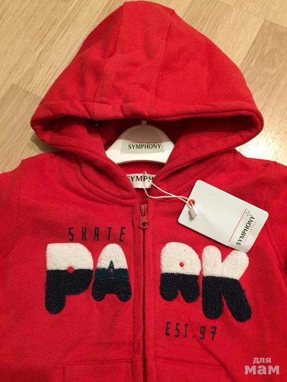 Кофточка-толстовка фирмы George. Красная, внутри начес,впереди рисунок Экскаватор. Состав 60% хлопок, 40% полиэстер.