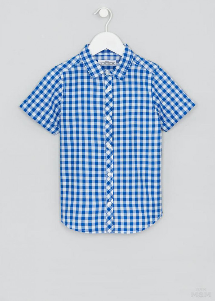 Рубашка с коротким рукавом фирмы M&CO. Синие, белые клетки, кармашек на груди застегивается на пуговичку. Состав 100% хлопок.