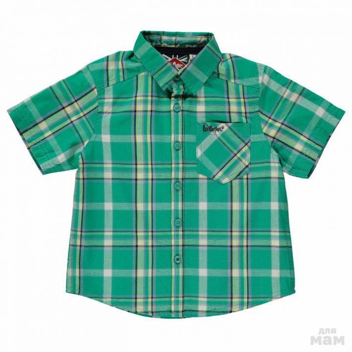 Рубашка с коротким рукавом фирмы Lee Cooper. Зеленая в клетку, летняя ткань, короткий рукав, кармашек на груди. 100% хлопок,