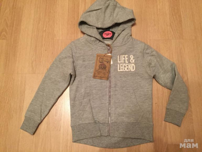 Толстовка с капюшоном фирмы Life&Legend . C небольшим начесом, застежка-молния, 2 кармана по бокам, эмблема-надпись на груди. Состав 50% хлопок, 50% полиэстер.