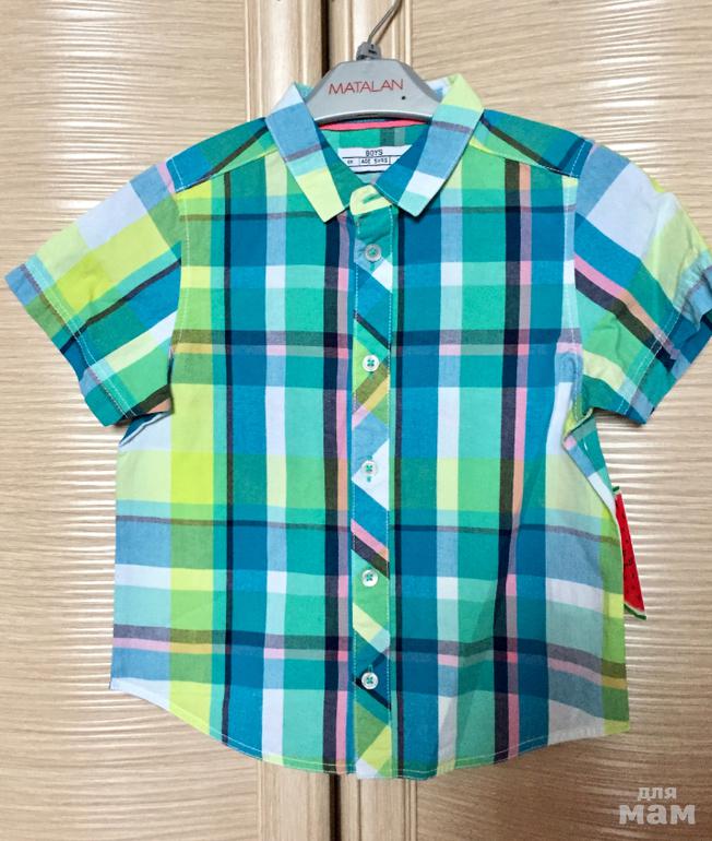 Рубашка с коротким рукавом фирмы M&CO. Синие, красные, белые клетки, кармашек на груди застегивается на пуговичку. Состав 100% хлопок.