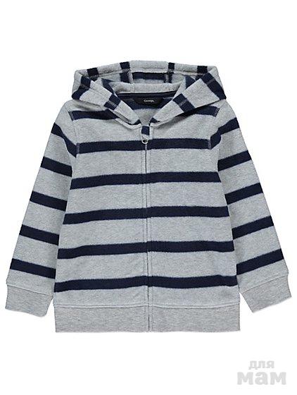 Толстовка флисовая с капюшоном фирмы George. Серые-темно-синие полоски, на молнии, флис средней толщины, ближе к плотному. Состав 100% полиэстер.