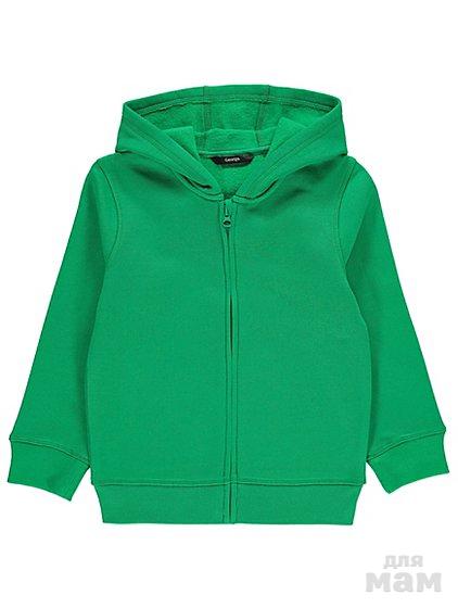 Толстовка с капюшоном фирмы George. Зеленая, ярче, чем на фото, внутри с начесом, впереди рисунок Динозаврики и надписи. Состав 80% хлопок, 20% полиэстер.