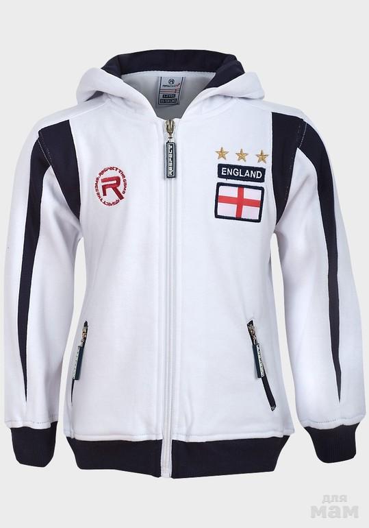 Толстовка с капюшоном фирмы Respect . C начесом, застежка-молния, 2 кармана по бокам, декоративные заплатки на локтях, эмблема на рукаве. Состав 80% хлопок, 20% полиэстер.