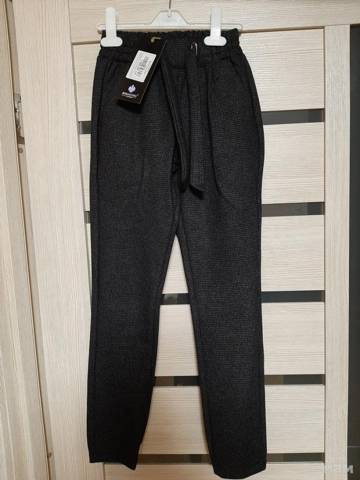 Новые утепленные брючки очень стильные на худышку. Пояс на резинке. Задняя часть брючины внизу на резинке. Мы их переросли за карантин(( Цена ниже покупки 1500 руб , отправлю почтой за Ваш счет