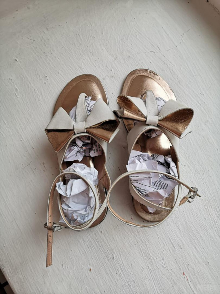 Коллекция прошлого года, носила мало. Однако есть нюансы в виде коцок на подошве, при носке не видно. Состояние хорошее. Ремешок обвязывается вокруг ноги, перемычка очень мягкая. Не натирает.нога не устает. Кожа натуральная. Производство Италия