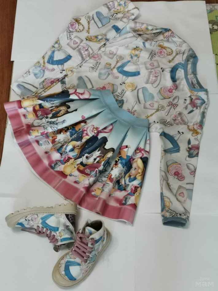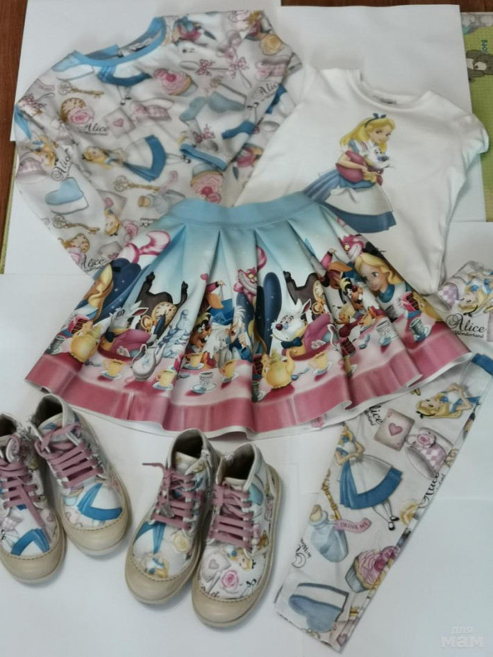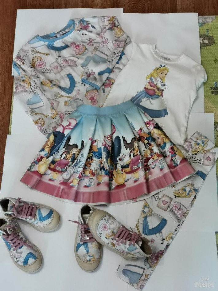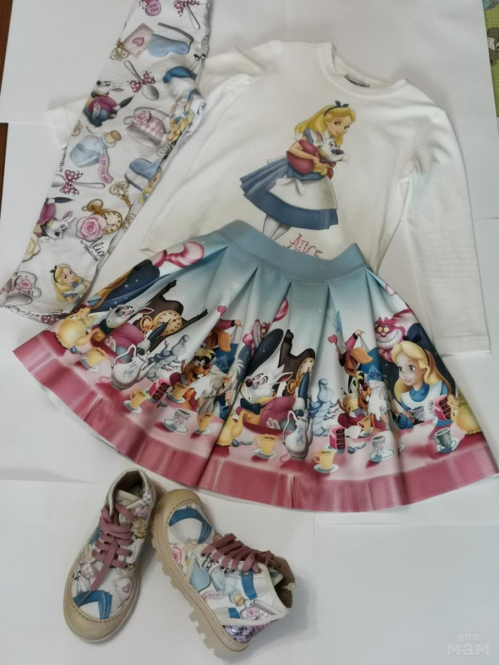Сказочный комплект Monnalisa 5-7 лет. Блуза, лонг, юбка, лосины, кеды 28 и 29 размеры. При покупке комплектом браслет из этой серии-в Подарок!