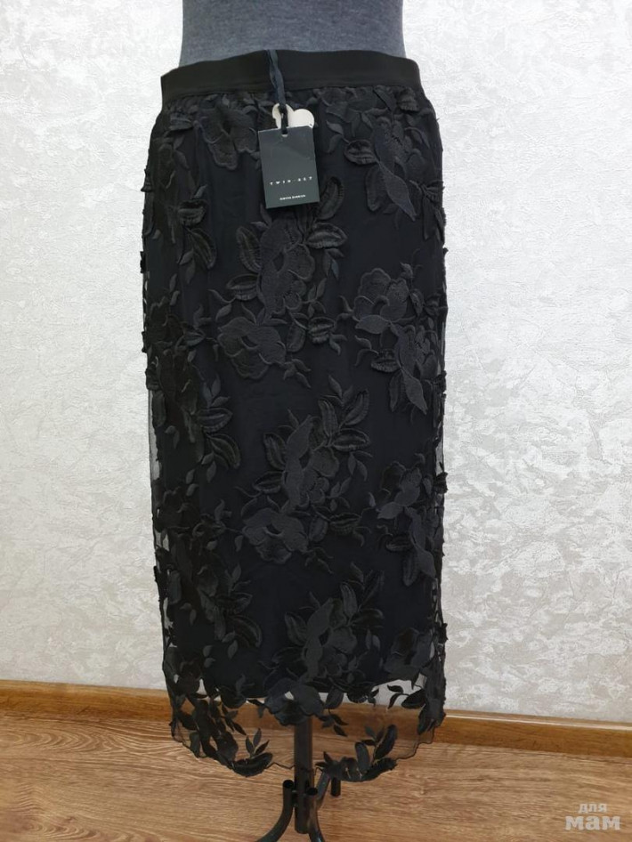 Новая. Оригинал.Цвет черный, верхний слой полиэстер, тюль, внутри хлопок. Юбка декорирована цветами, в виде аппликаций, справа вышивка мелкими бусинами. Размер: M. Цена: 3800 рублей.