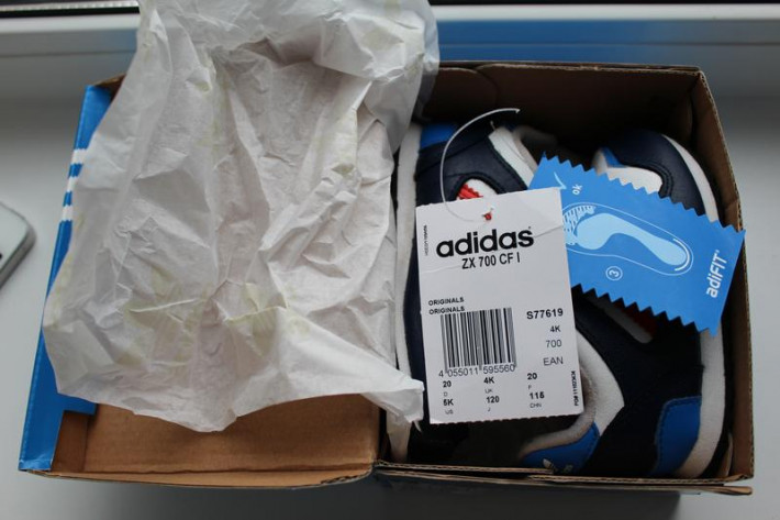 Продам кроссовки Adidas zx700 детская серия,стелька ortholite р.20(13см по стельке).Оригинал,покупались в фирменном магазине.Основная часть из натуральной кожи,есть вставочки из кожзама.Подошва очень лёгкая.Удобная застежка на липучки для быстрого и комфортного одевания/снимания.Прорезиненый мысочек спереди.Из небольших недочетов есть пятнышко на мысике на одном из кроссовок(видно на фото) и немного окрасились задники изнутри от джинс и носочков,в остальном в хорошем состоянии.