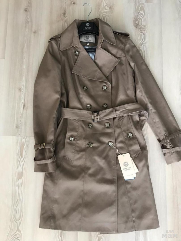 Приталенный плащ на подкладке. Смотрится стильно.