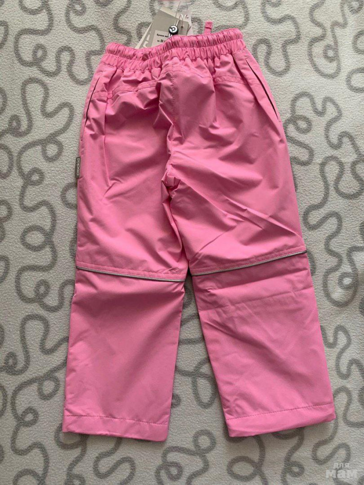 Мембранная ткань, подкладка из хлопка, светоотражатель. Ширину штанины внизу можно регулировать.