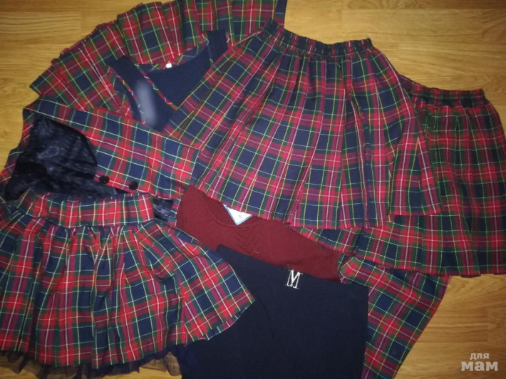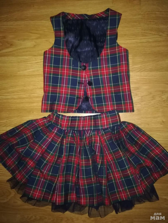 + жилет который из юбки делает сарафан (показано на фото) только нужно пришить сзади пуговицы на юбки , и на брюки чтобы получился комбинезон
