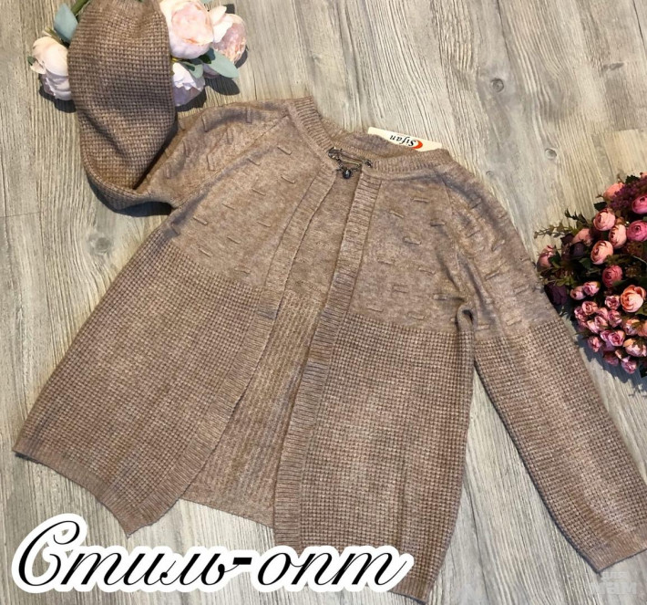 1.3. Нежный, теплый, плотная машинная вязка, мягкий кардиган с декоративной булавкой