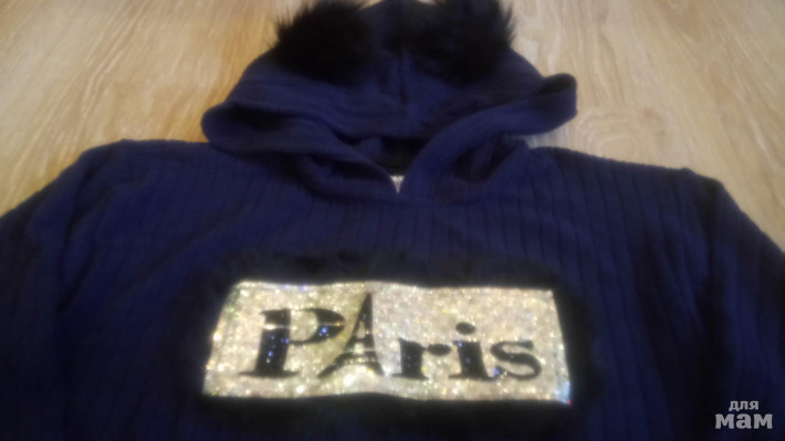 Продам тунику Mone, цвет темно синий, теплая, мех натуральный, маркировка 158, но большимерит лучше на 164. Состав 50% шерсть, 50% акрил. В идеале, одета 1-2 раза.