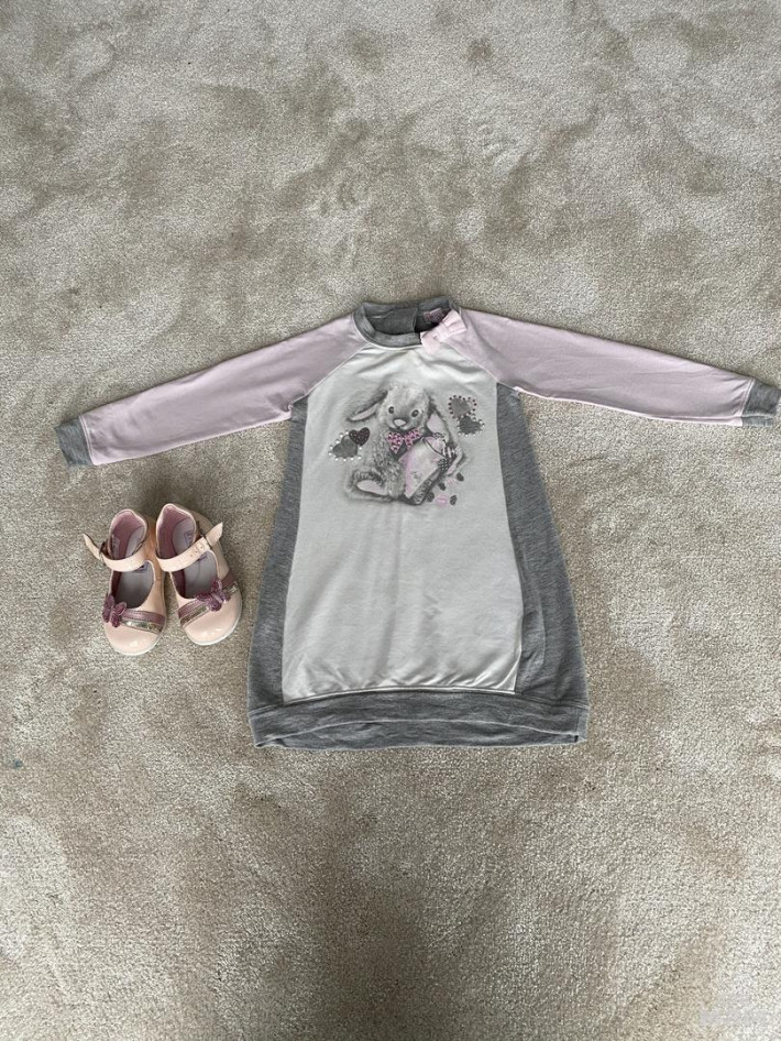 Красивое платье, состояние хорошее.На возраст 1,5-2 года (размер 18 мес.Туфли как новые, размер 21- 1600 руб (romagnoli)
