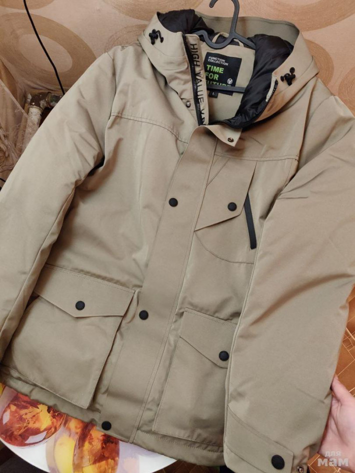 Бежевый стильный мужской зимний пуховик 10300 (абсолютно новый, с ценником )