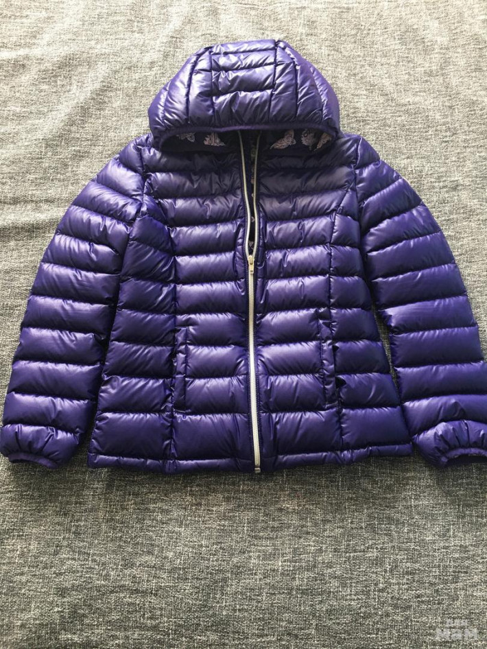 Тонкий пуховик, цвет сине-фиолетовый, полноразмерный, химчистка сделана, состояние очень хорошее, без нюансов