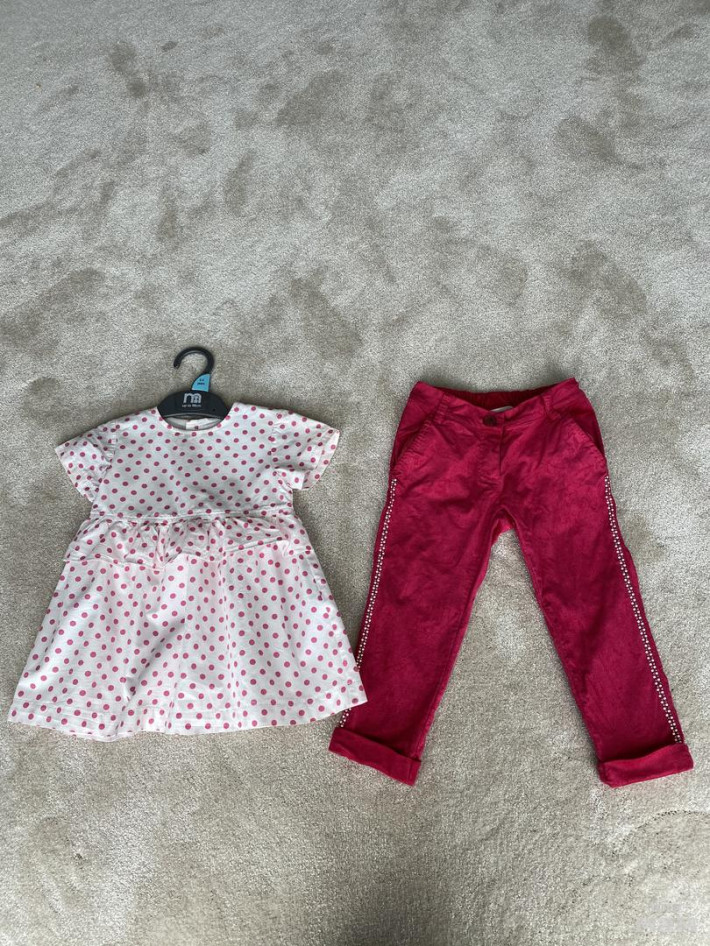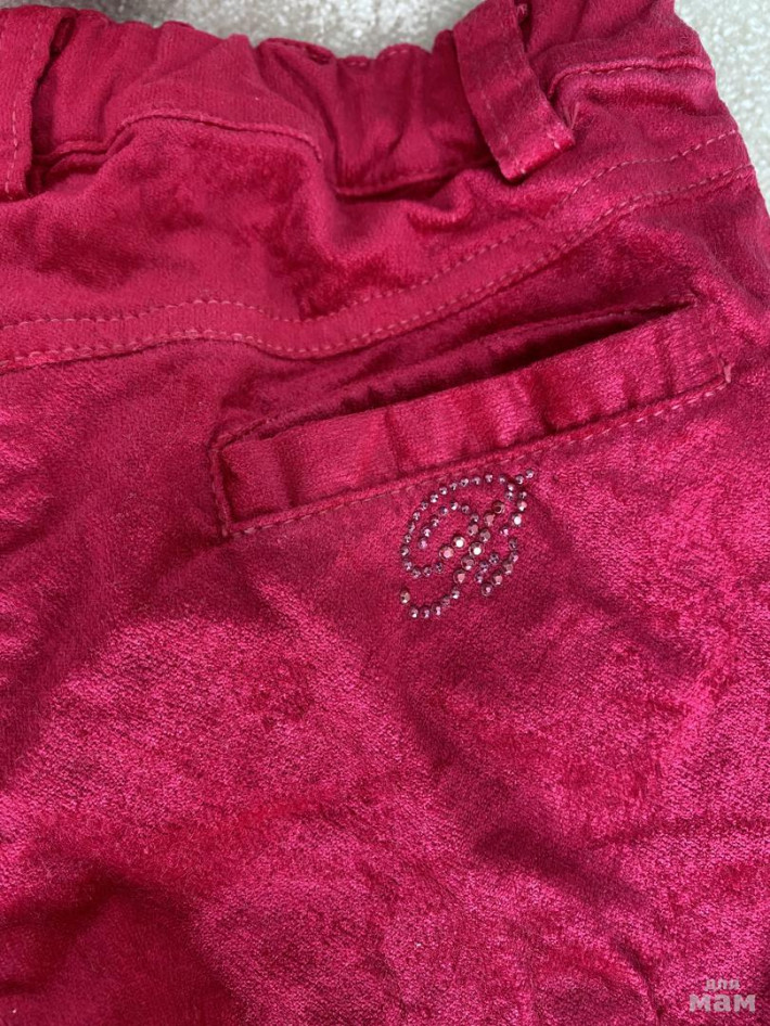 2) вельветки blumarine bebe: вельветовые джинсы, есть утяжка на поясе, все бусинки-стразы на месте, ткань тянется. Идёт в размер, можно носить до 2,5 точно. 1200 руб.