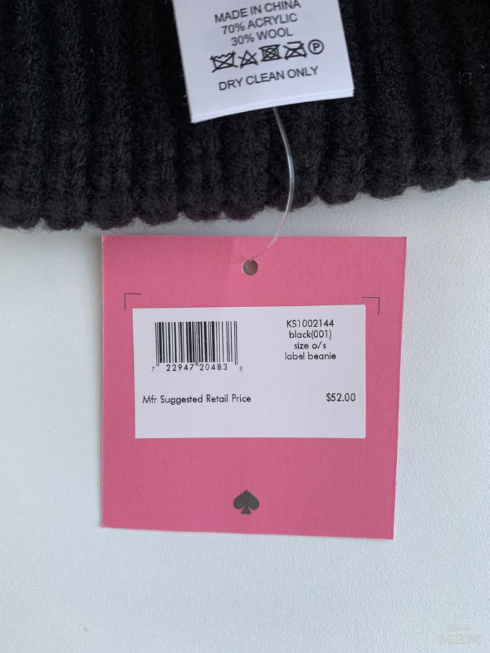 Шапка бини Kate Spade, премиальный бренд. Очень мягкая, качественная. Стоила 52,00 $ Глубокий черный цвет, на домашних чуть засвечен. Шапочка объемная, с тройным подворотом.