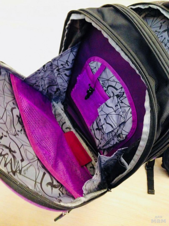 Ранец для девочки Hummingbird Cat in Style T81 сделан в ярком фиолетовом оформлении с кошкой в очках и цветочными узорами. Модель разработана специально для детей начальной школы с 1 по 5 класс. У ранца жесткий корпус. Он изготовлен из экологичного, легкого и прочного материала EVA. С обратной стороны установлена современная рельефная ортопедическая спинка с каналами для циркуляции воздуха и сетчатой мембраной. Это сделано для того, чтобы ранец правильно прилегал, а спина ребенка дышала. На мягких лямках установлены фиксирующие крепления, а также небольшие рукоятки «ERGO system» для регулировки комфортной длины. В переднем кармане установлен органайзер с креплениями для канцелярских принадлежностей, телефона и ключей. На дне ранца стоят рельефные пластиковые ножки. Сверху установлена прорезиненная ручка с логотипом Hummingbird и петелька для крючка. Внутри предусмотрены жесткие перемычки и вставки, чтобы распределять учебники, тетради, сменку, а также альбомы и книги формата А4. Благодаря водоотталкивающему материалу содержимое останется в целости и сохранности, даже если на улице дождь или снег.