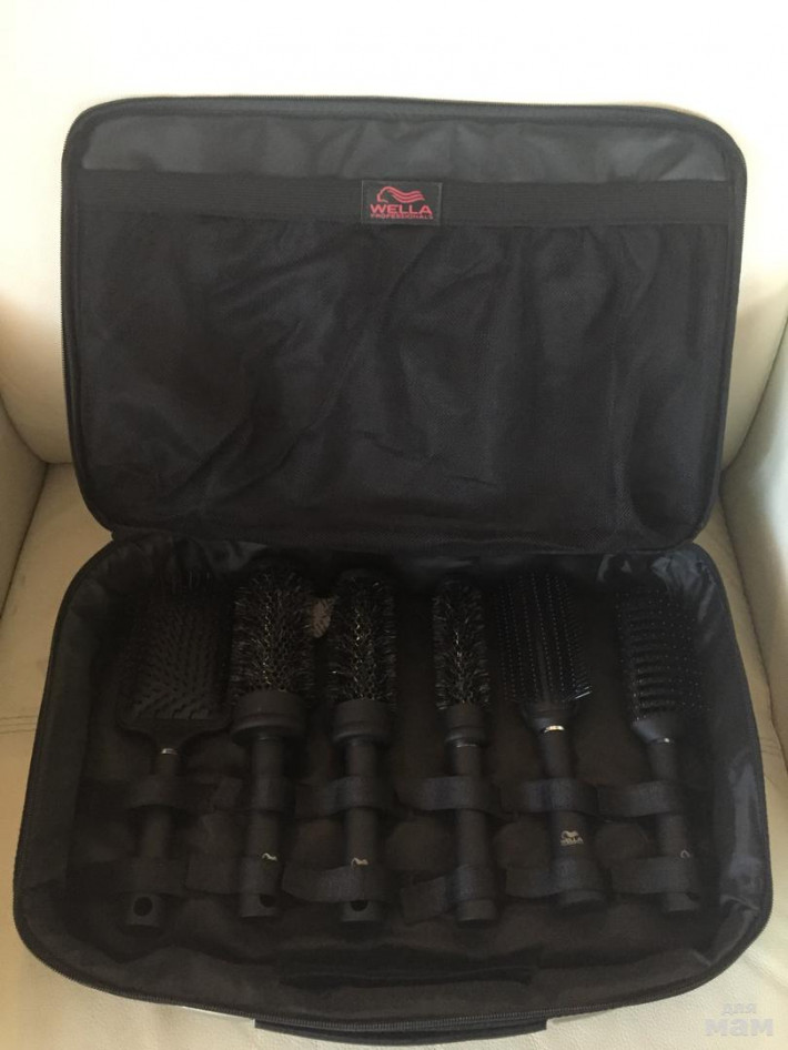 В чемодане. 6 расчесок. Есть различные отсеки для хранения. Сама пользуюсь таким же набором. Очень довольна качеством.