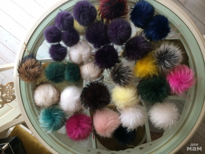 Это я для наших шапок покупала. Под каждую куртку или обувку под цвет. Так и не пригодились. Начала Шапки заказывать у Карины, а у неё помпоны свои шикарные!