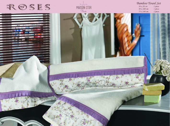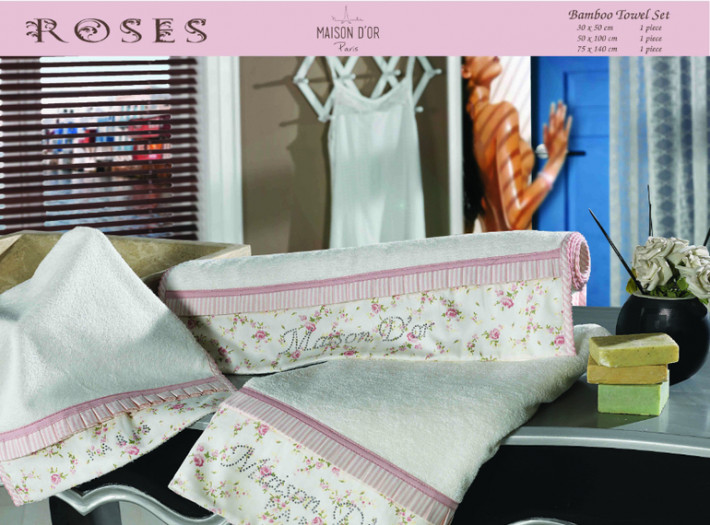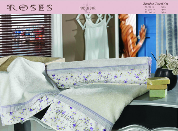 MAISON D*OR ROSES Набор 3-х предм. махровых полотенец (декор сатин стразы)