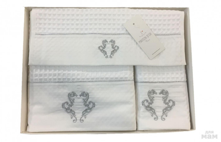 MAISON D*OR BRISE APE Набор 3-х предм. вафельный набор полотенец (декор - вышивка стразы)